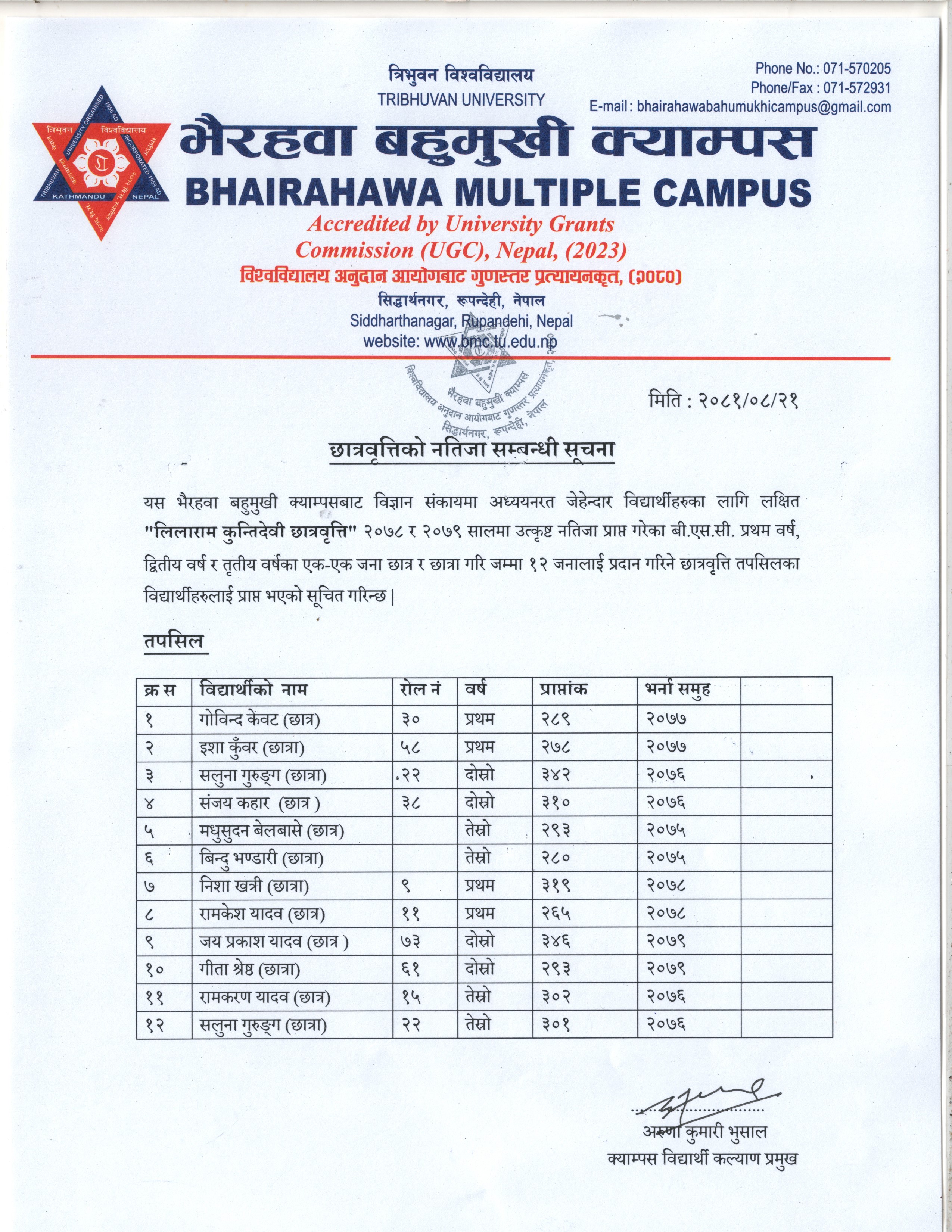 छात्रवृत्ति नतिजा सम्बन्धी सूचना