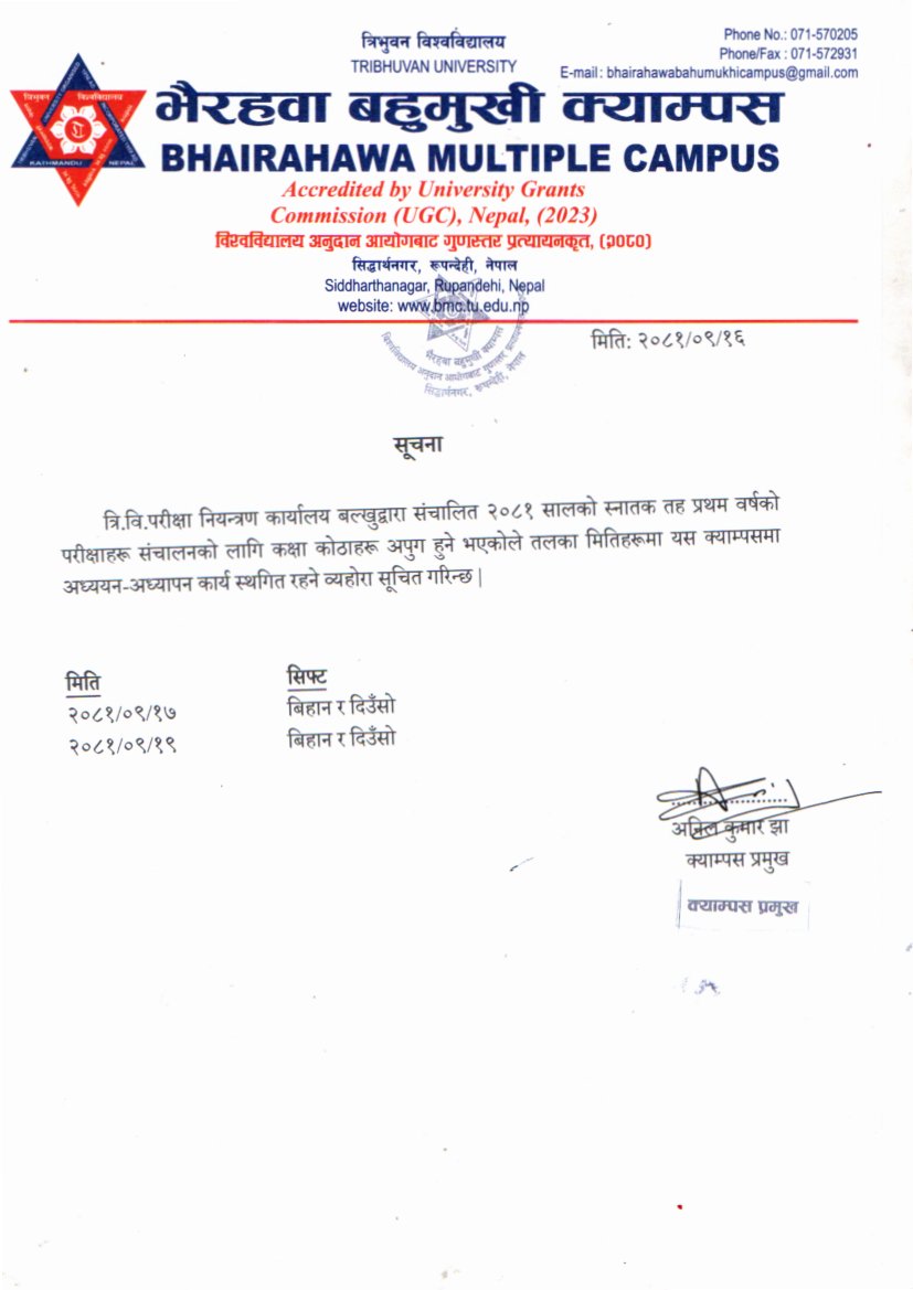 ३ वर्षे स्नातक तह दोस्रो वर्षे मौका परीक्षा सम्बन्...