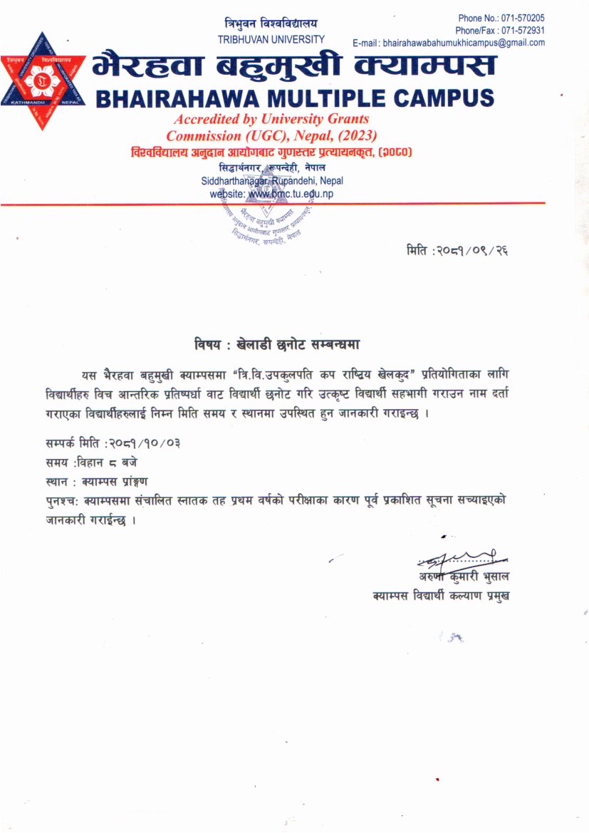स्नातक तह प्रथम वर्ष २०८२ समूहमा भर्ना भई त्रि.वि...