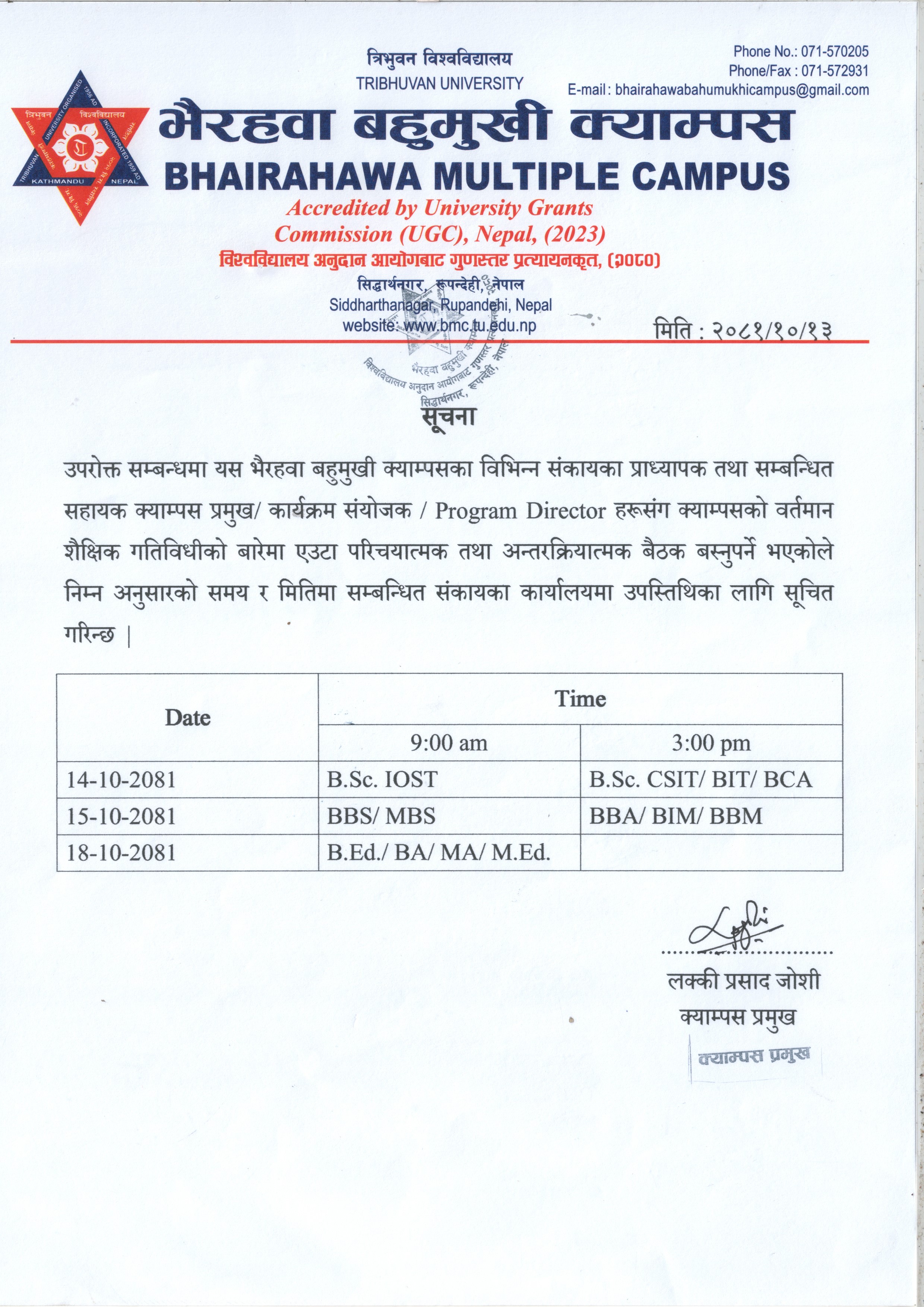 स्नातक तह प्रथम वर्ष २०८२ समूहमा भर्ना भई त्रि.वि...