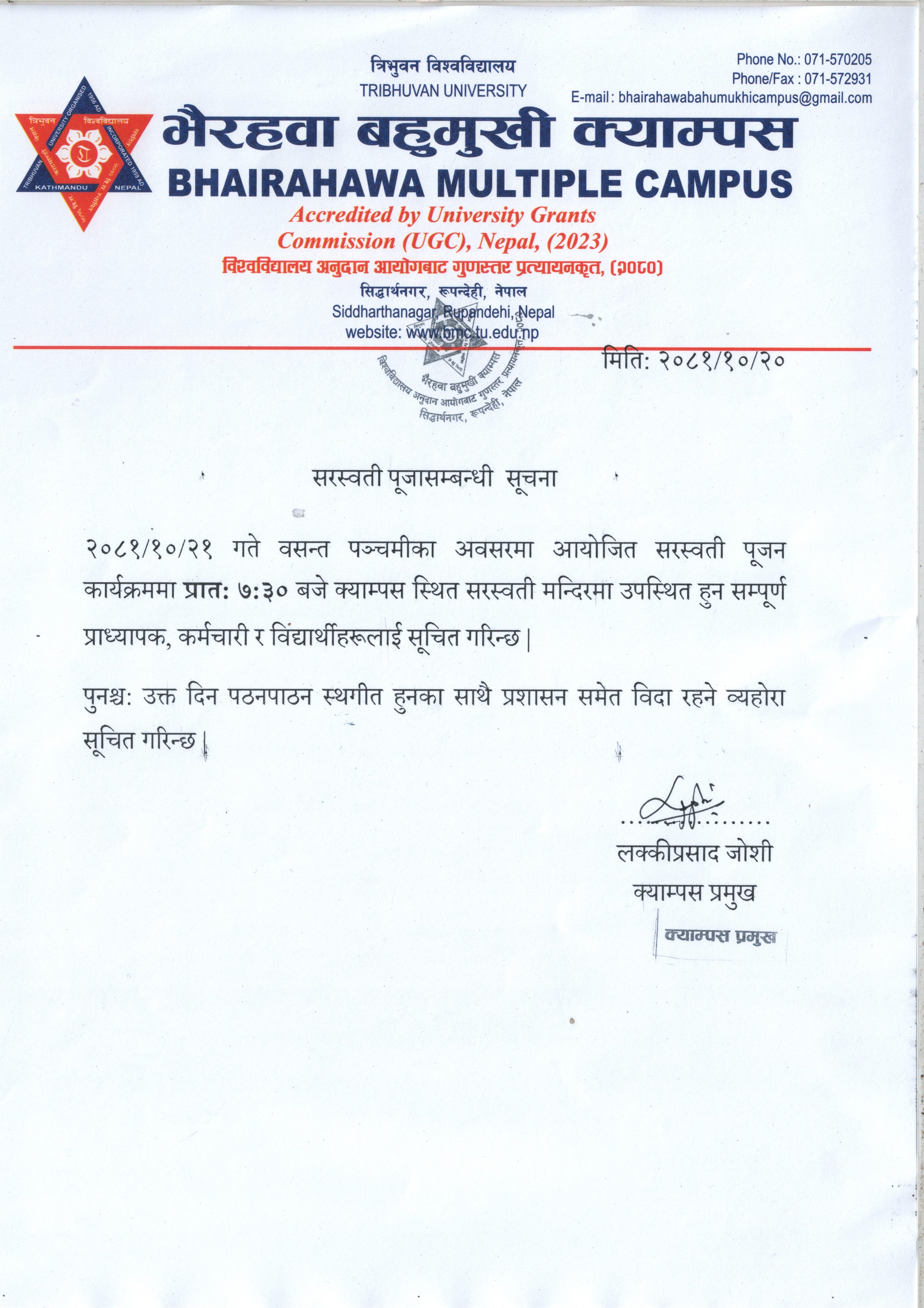 स्नातक तह प्रथम वर्ष २०८२ समूहमा भर्ना भई त्रि.वि...
