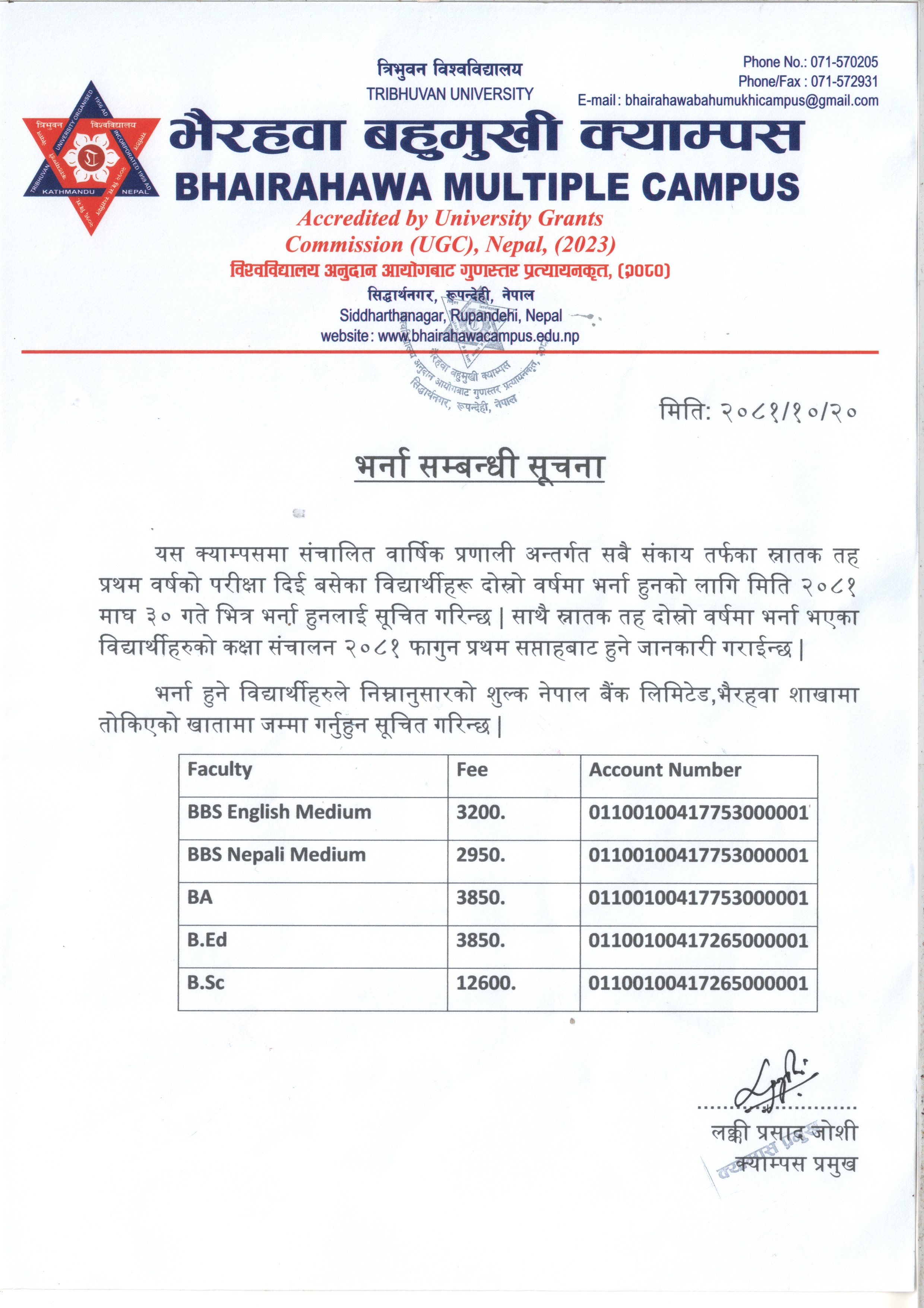 स्नातक तह प्रथम वर्ष २०८२ समूहमा भर्ना भई त्रि.वि...