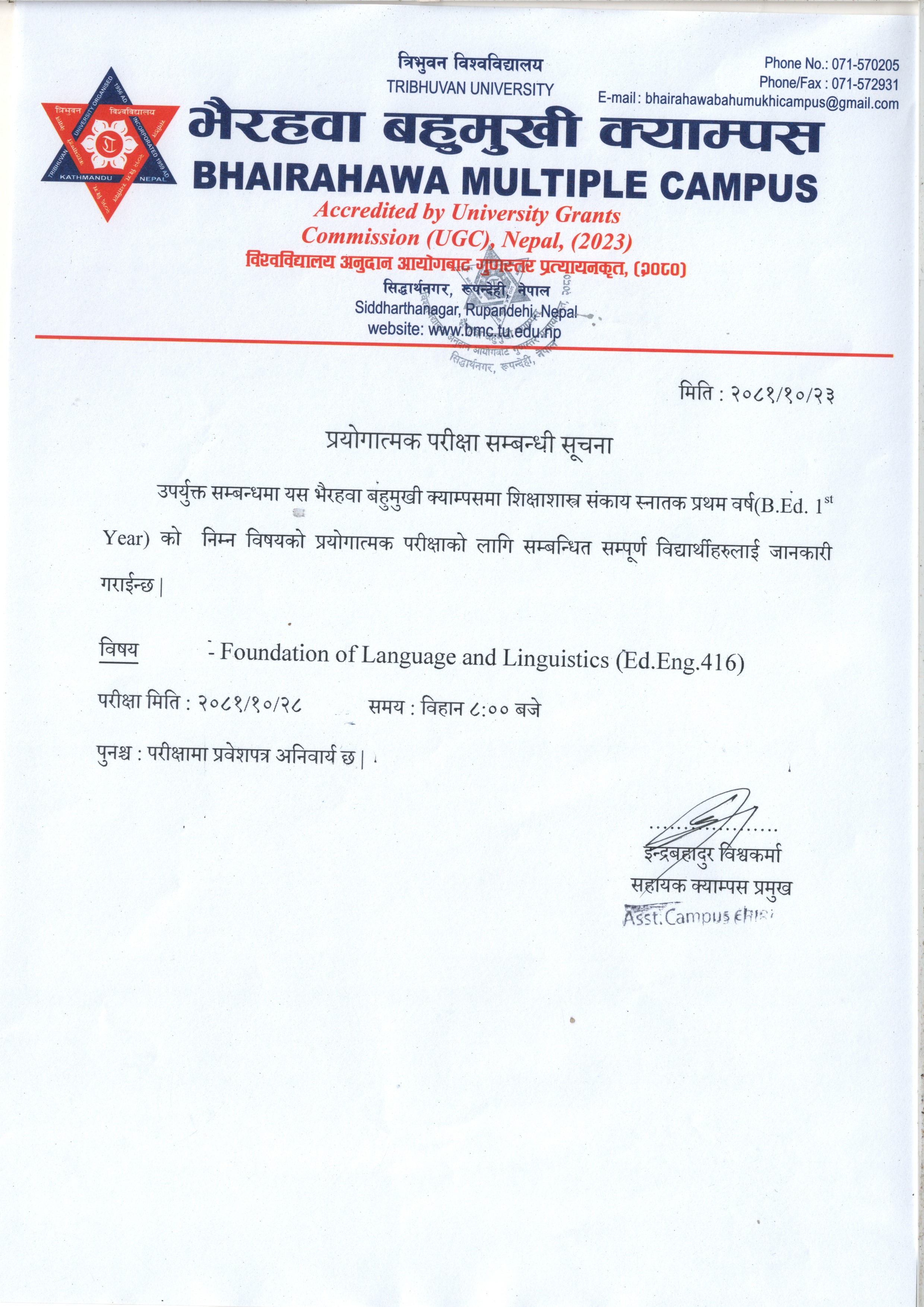 स्नातक तह प्रथम वर्ष २०८२ समूहमा भर्ना भई त्रि.वि...
