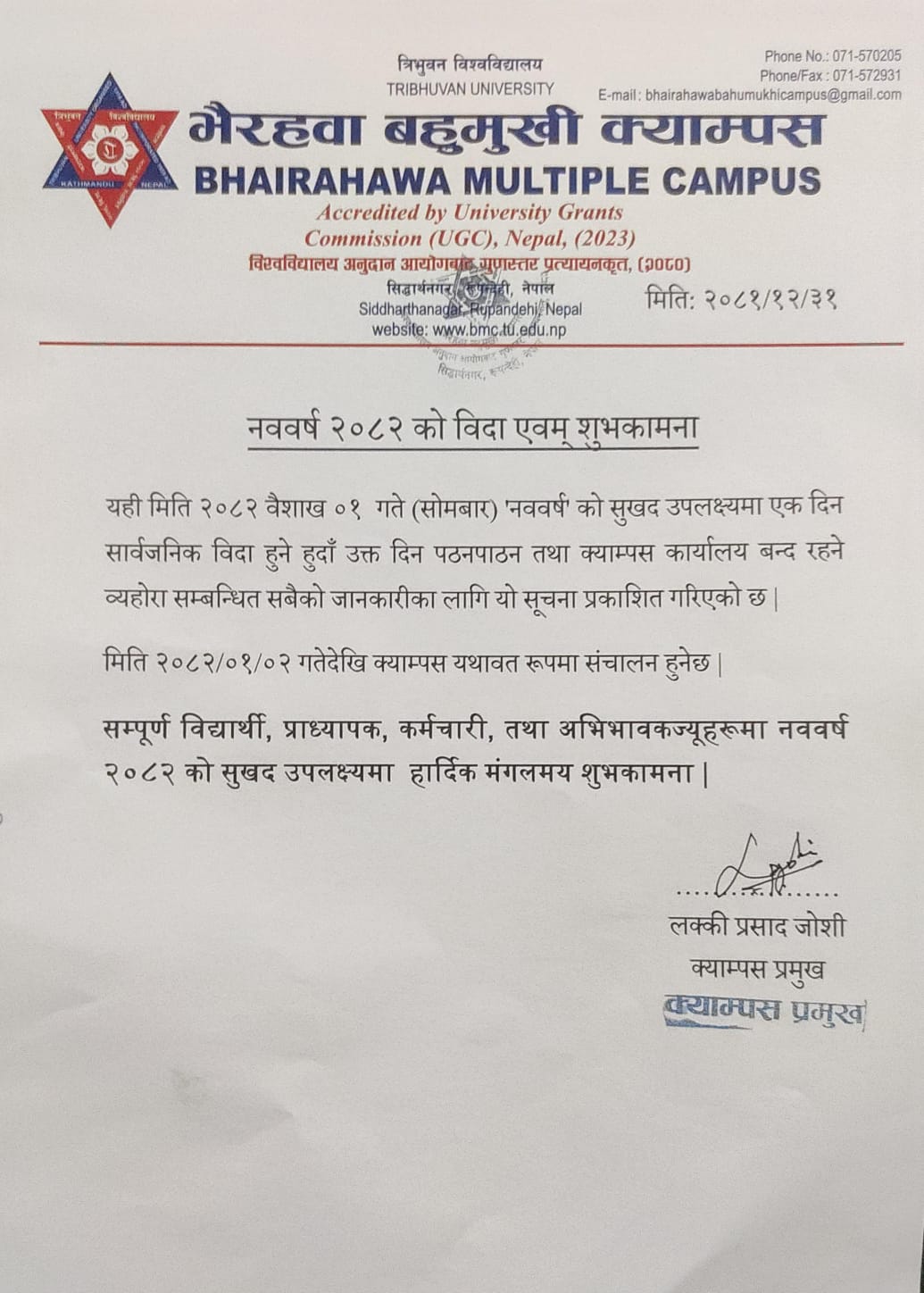 नववर्ष २०८२ को विदा एवम् शुभकामना