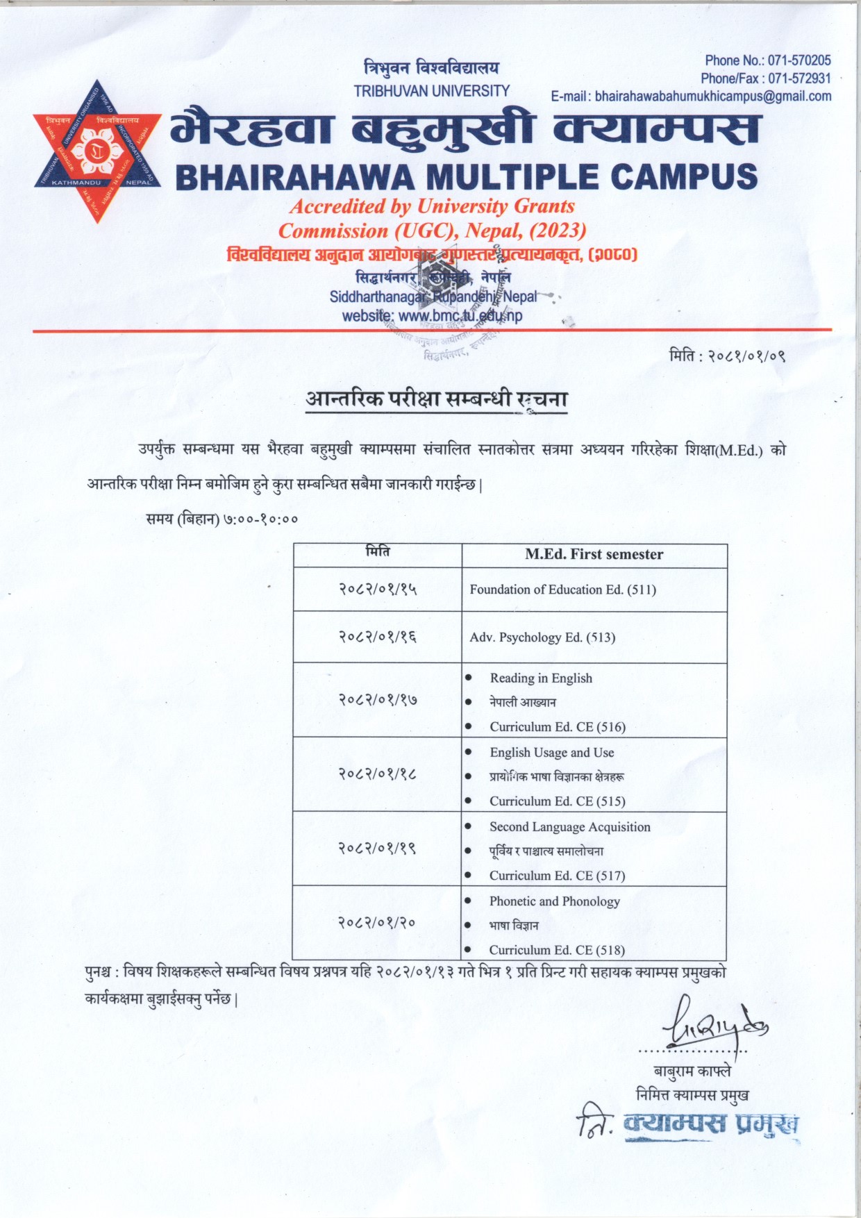 ३ वर्षे स्नातक तह दोस्रो वर्षे मौका परीक्षा सम्बन्...