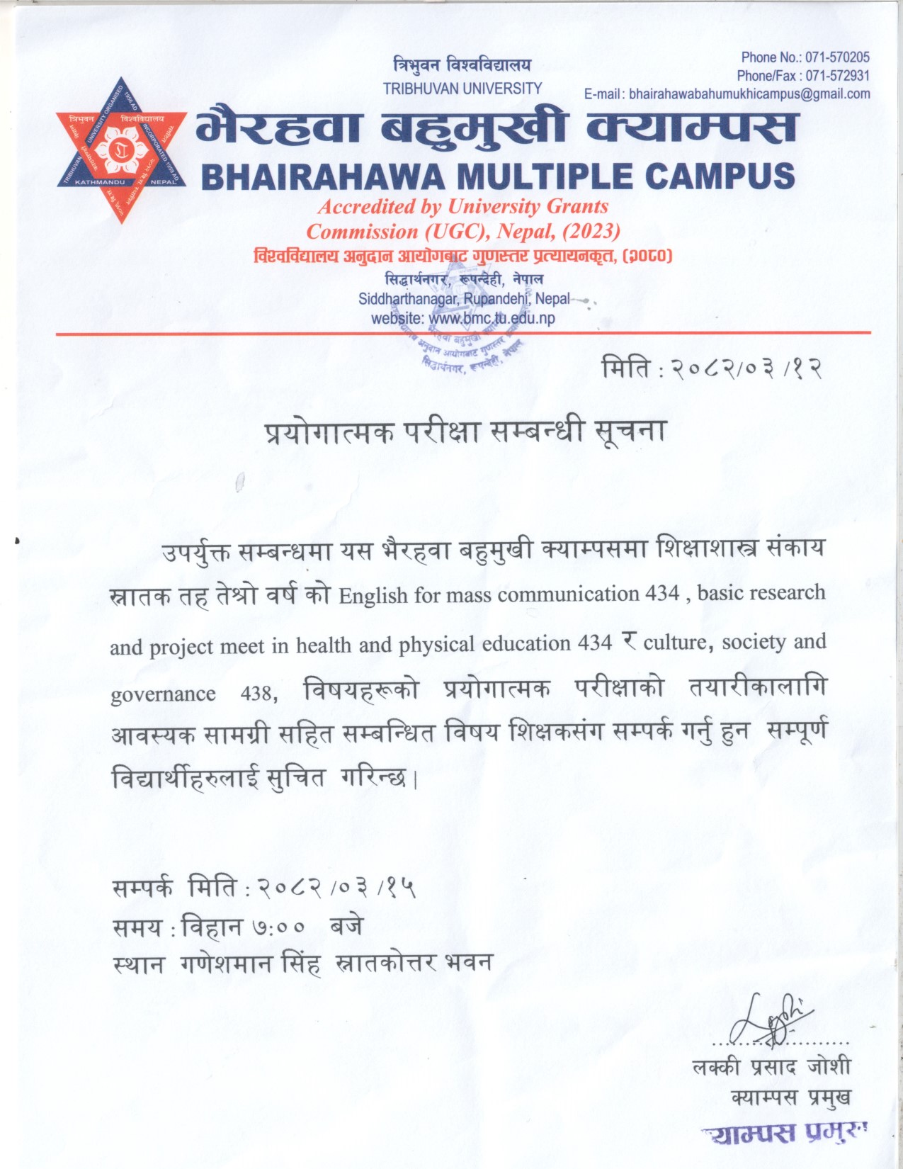 ३ वर्षे स्नातक तह दोस्रो वर्षे मौका परीक्षा सम्बन्धी सूचना ।